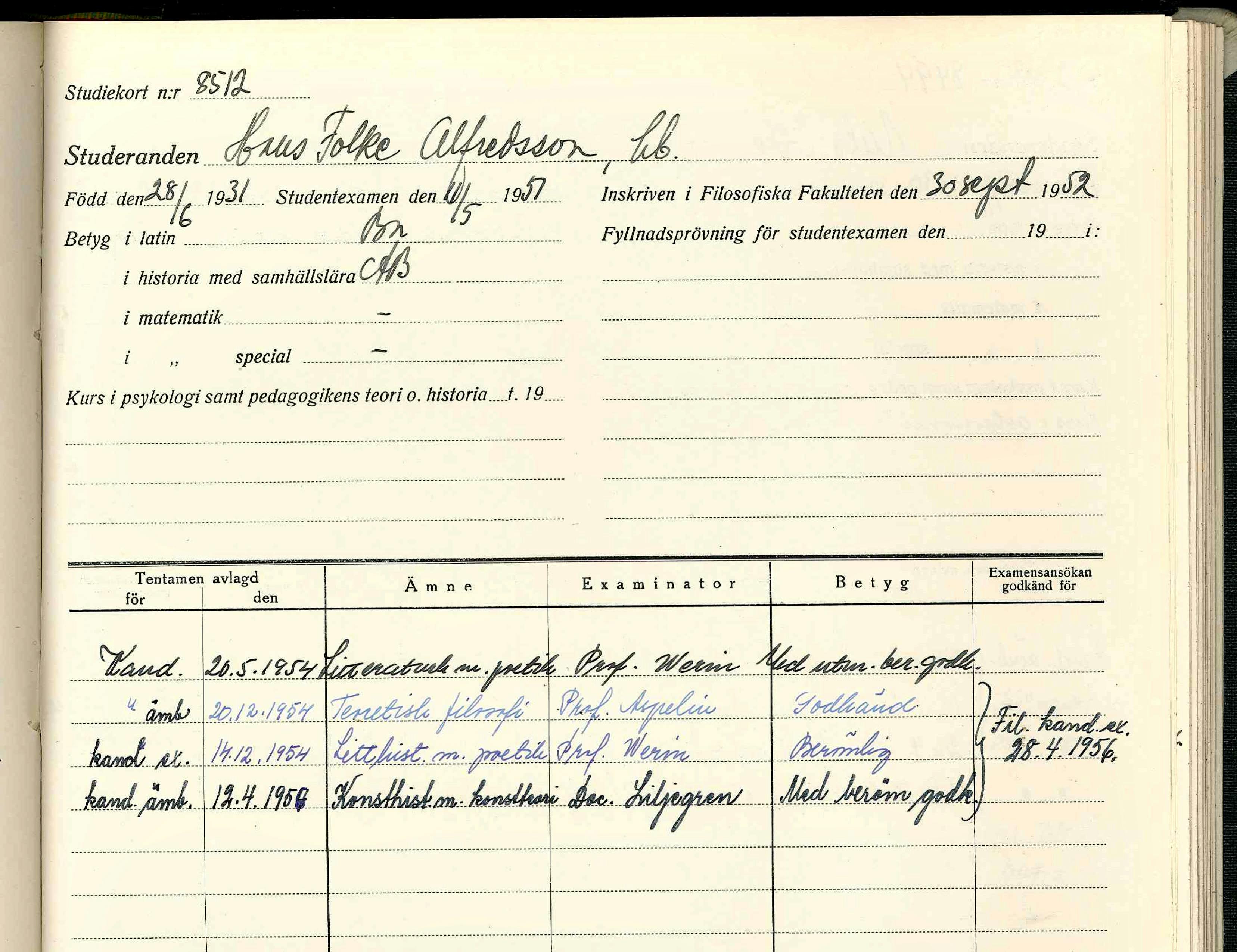 I dessa kan man ofta rätt lätt hitta samlade översiktliga uppgifter om vad en student läst och tenterat i för ämnen samt för vilka lärare.