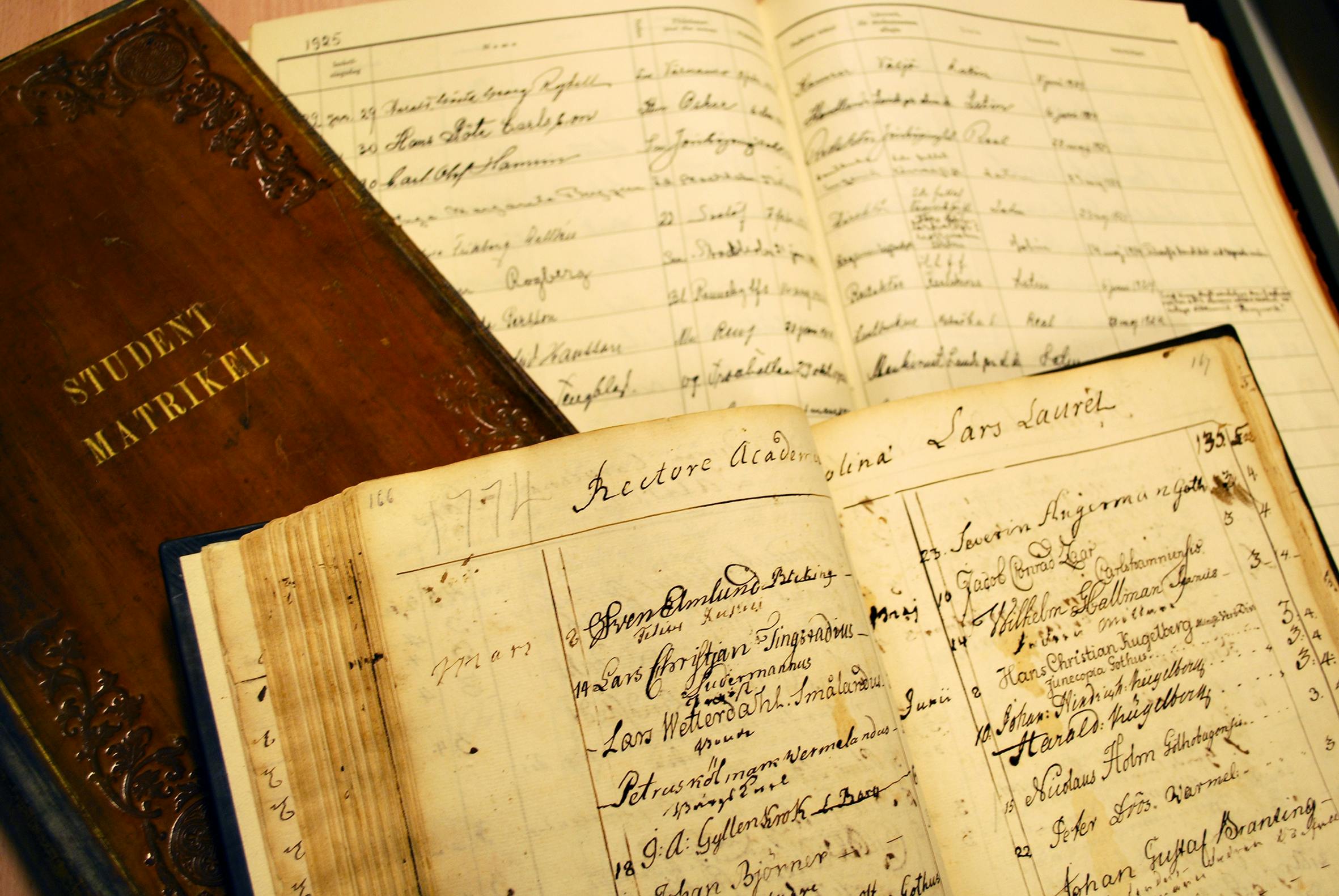 Det var inte många som hade förmånen att få studera i Sverige på 1700- och 1800-talen. Men de ynglingar som fick ”ligga i Lund” eller studera i Uppsala i några år lämnade rikligt med spår efter sig i arkiven.