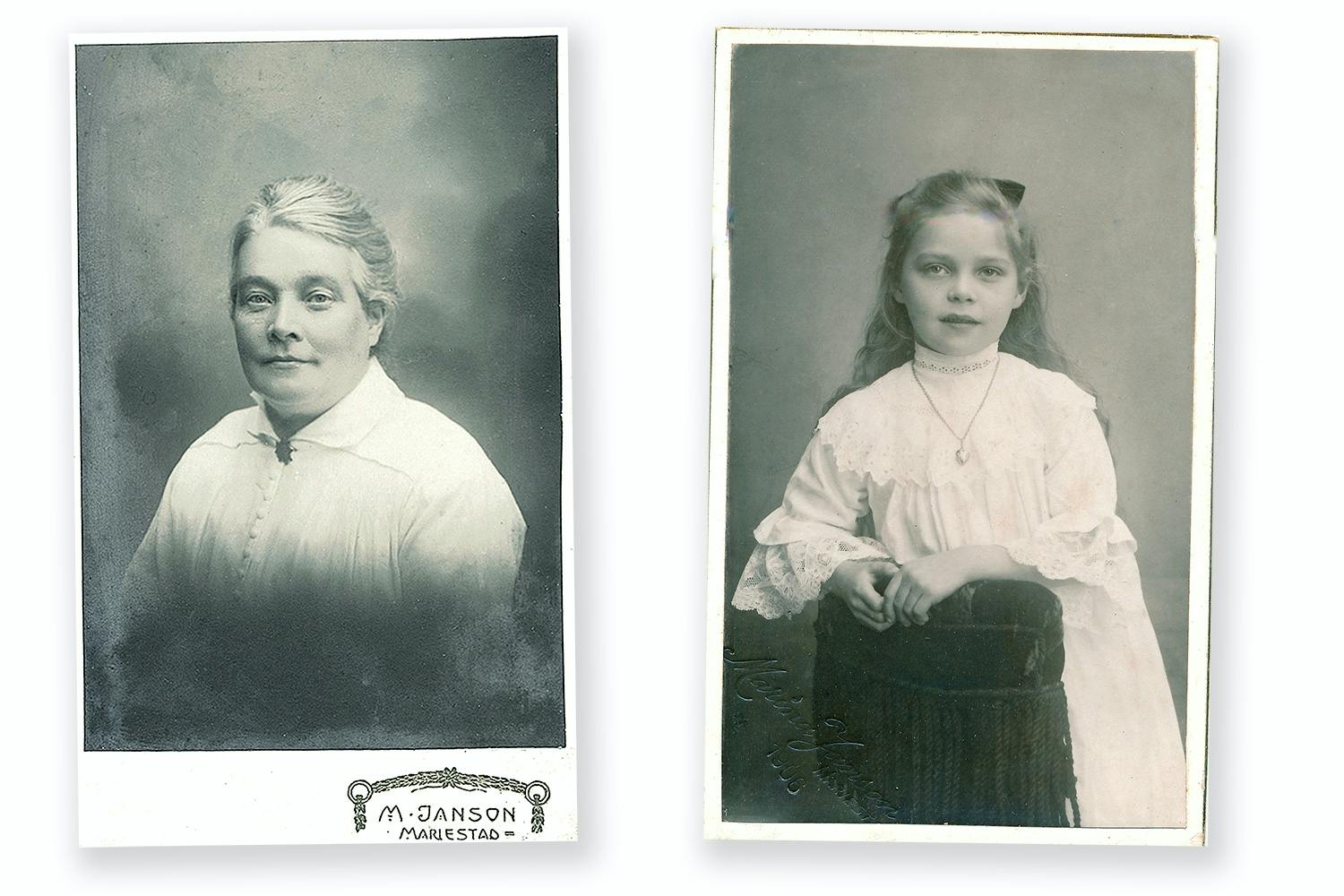 Farfars farbröder var ogifta och bodde kvar i sitt föräldrahem som ärvts på moderns sida. Med det som ledtråd kunde jag konstatera att personerna på bilderna var min farfars farmor Hannas föräldrar. Det bekräftades också av att ägaren till de äldre bilderna var barnbarn till Hannas syster.