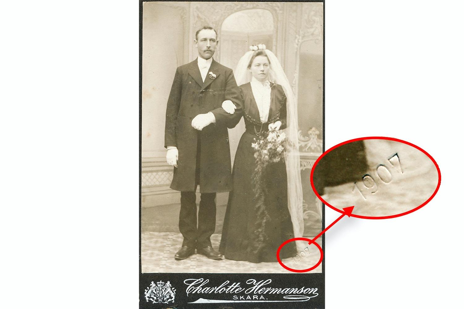 När det gäller gamla ateljéfotografier, hittar man under 1900-talets början ibland årtalet tryckt i ena hörnet. Vet man vilket år kortet är taget så blir identifieringen ofta enklare.