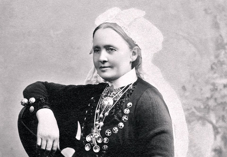 Hon drog alltid blickarna till sig där hon vandrade mellan utställningsborden i sin svarta Ingelstadsdräkt, och stora vita huva, prydd med massor av silversmycken.