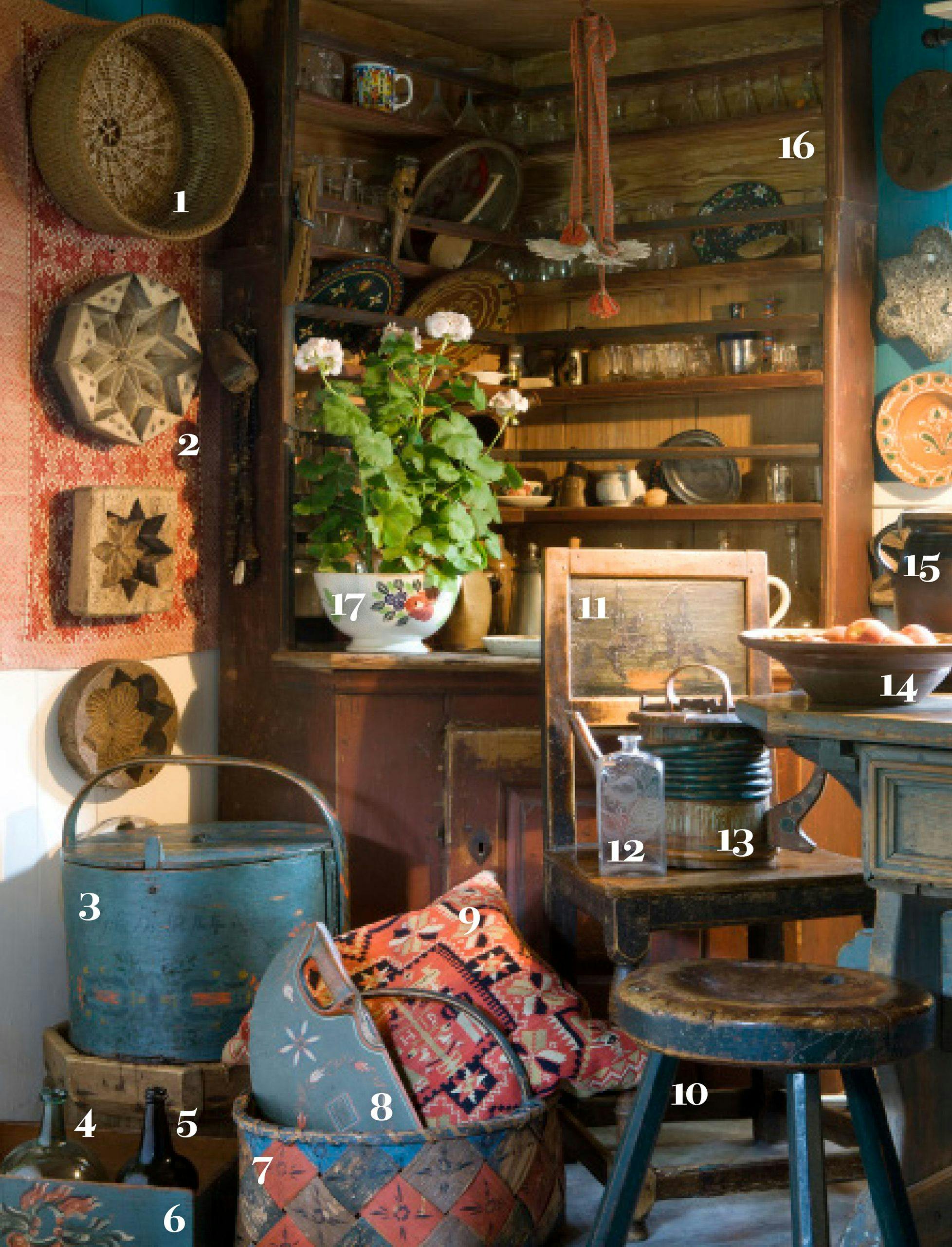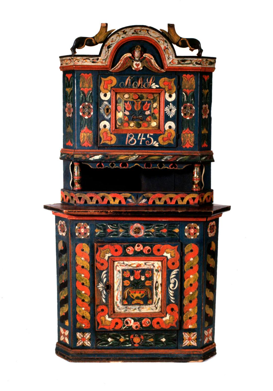 Dekorativt målade möbler, handvävda mattor, nötta pallar och vackra lerkrus passar även i våra moderna hem. Gästgivardöttrarna i Everlöv var kända för sina fantastiska flamskvävnader – och det arvet fördes vidare i många generationer. De allra äldsta trähästarna från Dalarna var vita med prickar. På 1840-talet fick de den klassiska kurbitsmålningen.