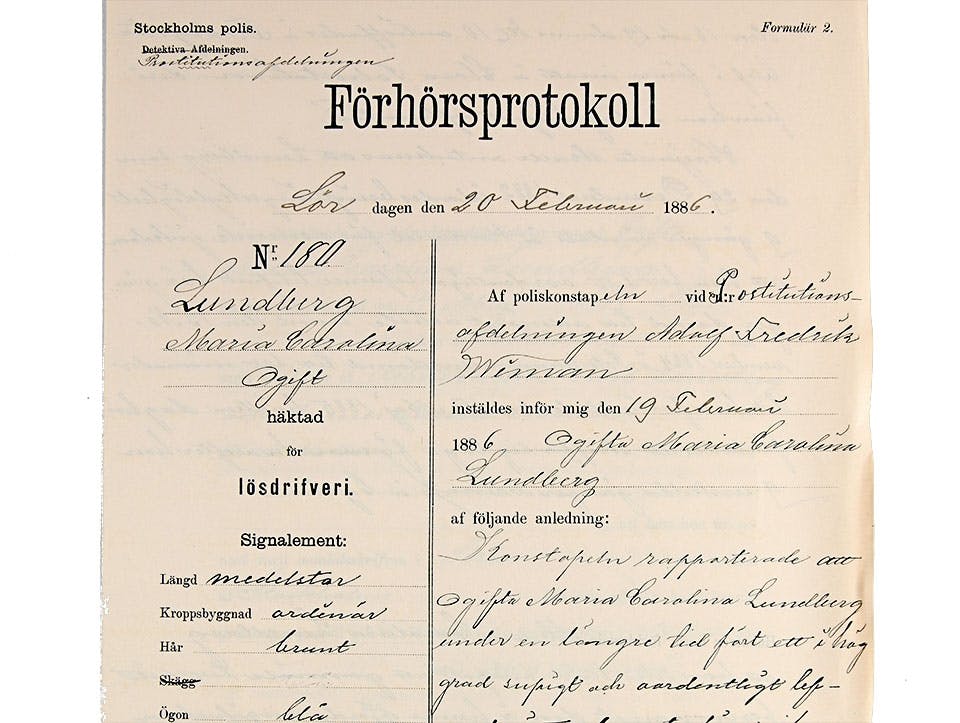 Maria Carolina Lindberg och andra prostituerade kvinnor i Stockholm lämnade spår i följande arkiv: