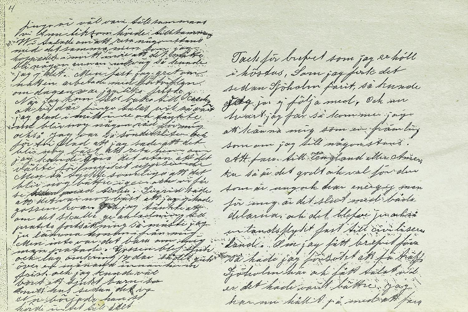 ”Du har nog af tidningarna sett att jag skall få resa hem. … här har varit så mycket bråk och tråkigheter att jag (ej) står ut längre. Jag får nästan alltid vara ensam nu, det var jag förut med. Ibland känner jag som om jag ej skulle kunna uthärda.”