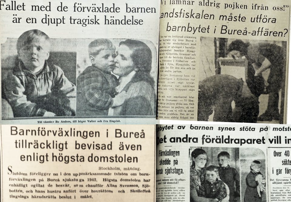 1942 förväxlades två spädbarn på Bureå sjukstuga och växte upp i varsin grannby. Sju år senare insåg den ena pojkens föräldrar vad som skett och tog fallet till domstol. Anders Jonsson minns att historien präglade hela bygden under hans uppväxt.