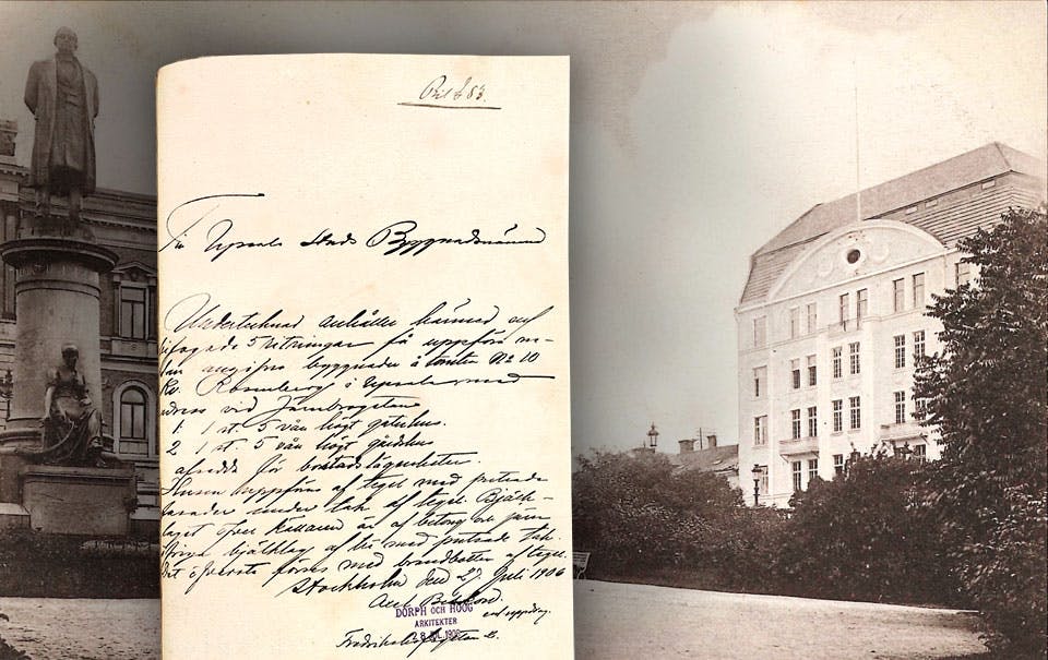 Axel Beskows ansökan om bygglov togs upp av nämnden den tredje augusti 1906. Av protokollet framgår att ansökan gått genom stadsarkitekten och att man bifogat ritningar över byggnadens storlek, utseende, inredning och läge på tomten.