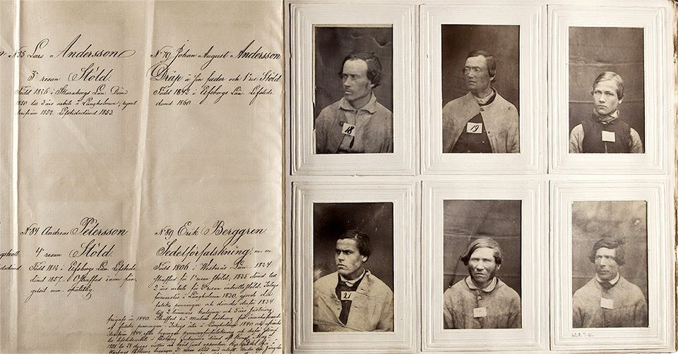 På 1870-talet började man fotografera alla fångar på svenska fängelser. Intill bilderna kan man ofta också hitta handlingar om dessa människors dramatiska levnadsöden.