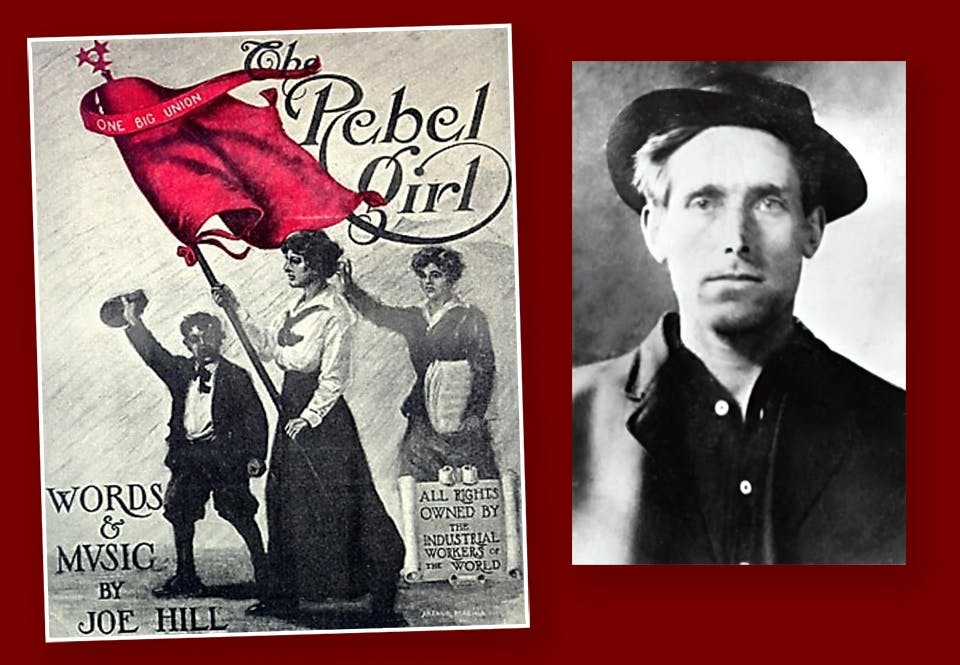 Joe Hill föddes som Joel Hägglund i Gävle 1879, och utvandrade till USA som 23-åring. Under många år höll han sig flytande med dåligt betalda jobb och runt 1910 engagerade han sig i den gryende arbetarrörelsen. Han blev snart en framträdande personlighet som organiserade strejker, agiterade och skrev populära kampsånger. Hans rykte växte och han engagerades av allt fler fackföreningar.