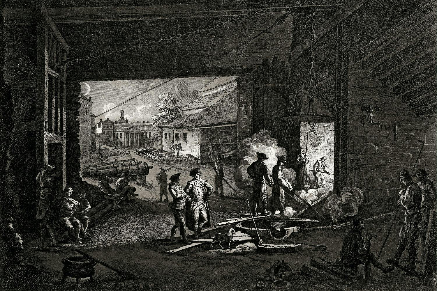 Sådana fanns i Östergötland, Sörmland och Värmland och där tillverkades vapen som musköter och kanoner av hög kvalitet för den svenska armén.